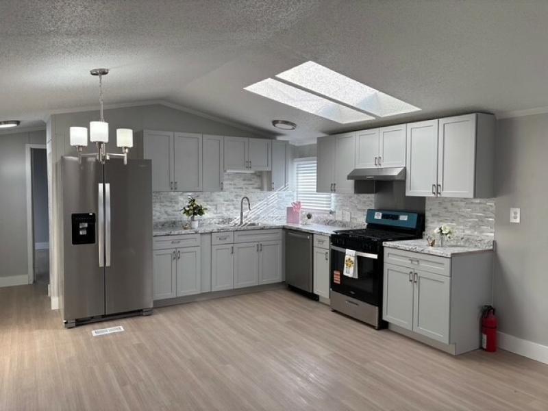 This beautiful, remodeled three-bedroom, two-bath home is a must-see! It comes equipped new appliances; stove, refrigerator, dishwasher, garbage disposal, washer, and dryer. The home features an open-concept layout, with the kitchen flowing seamlessly into the dining and living. A cozy fireplace adds warmth to those chilly nights. This home has new cabinets, new flooring throughout, and fresh paint. Outside, you'll find a new, spacious deck that's great for grilling, entertaining, or just enjoying some fresh air. An outdoor shed adds extra storage space.
